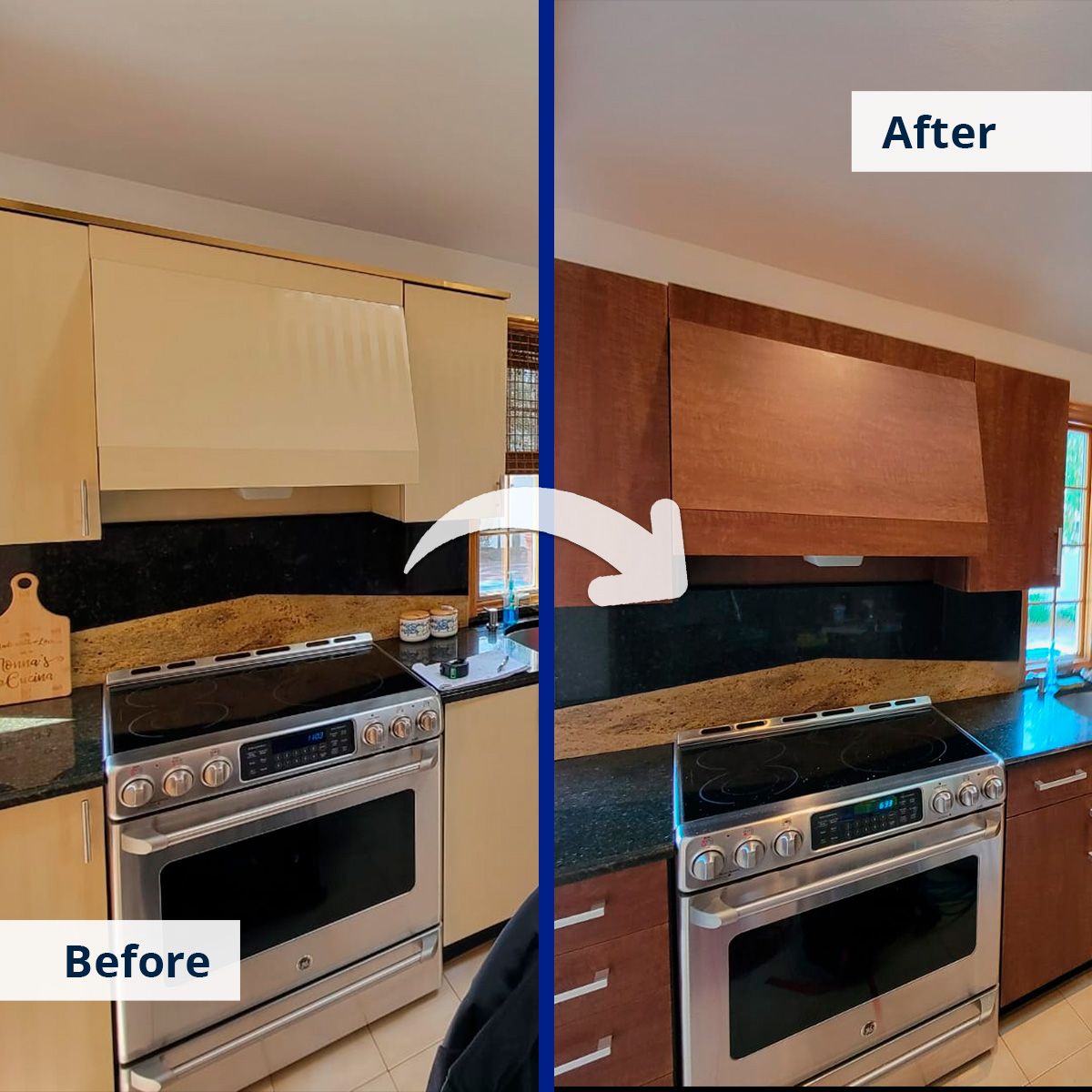 π₯ Check out this stunning before and after transformation of our recent cabinet refacing job! π